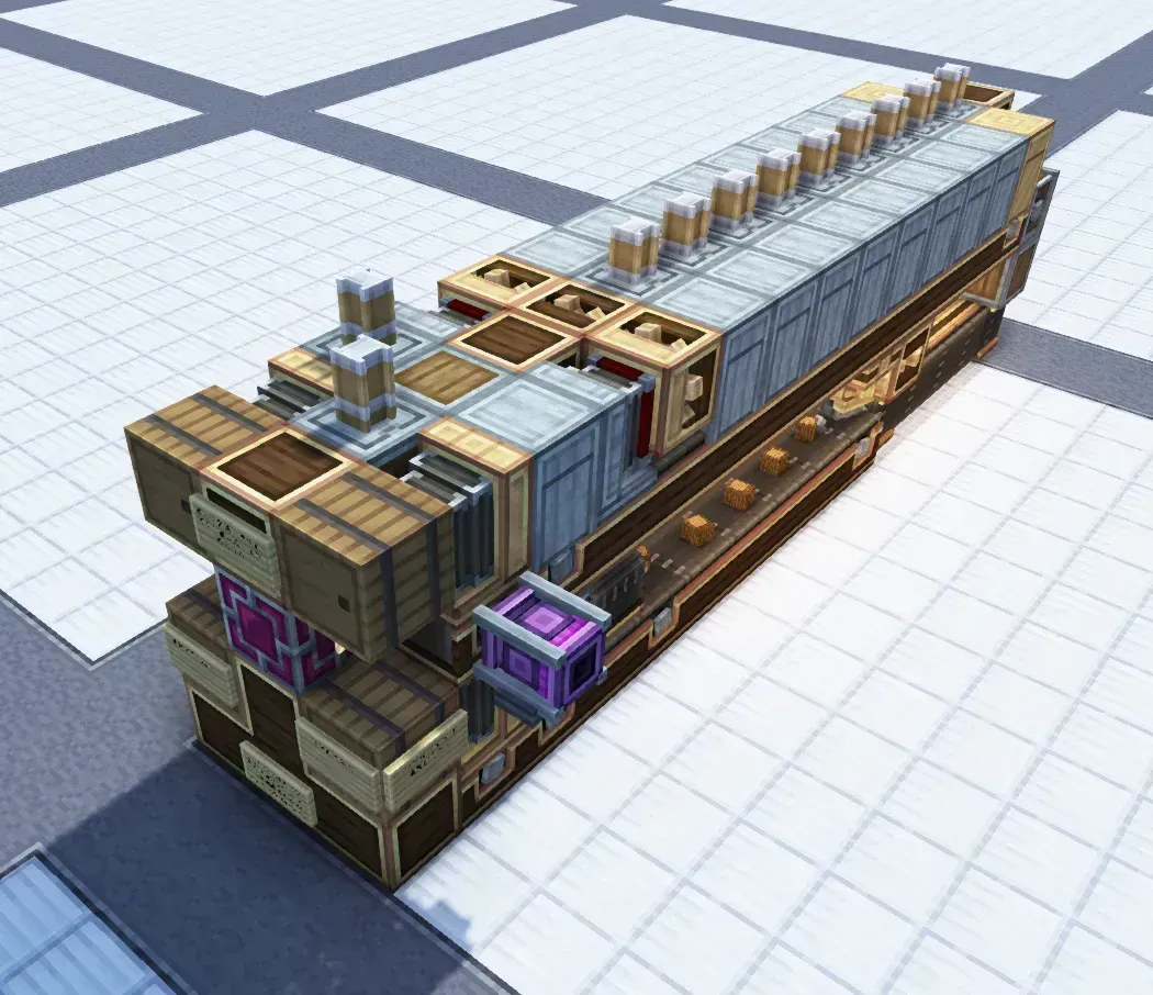 作者:铜锌块输入,黄铜块输出,九倍速,效率受传送带影响大约在4k铜锌块消耗,8k黄铜块/72k黄铜锭左右,在输出传送带上加黄铜漏斗可以提高效率,但有残留,故未采用此方案