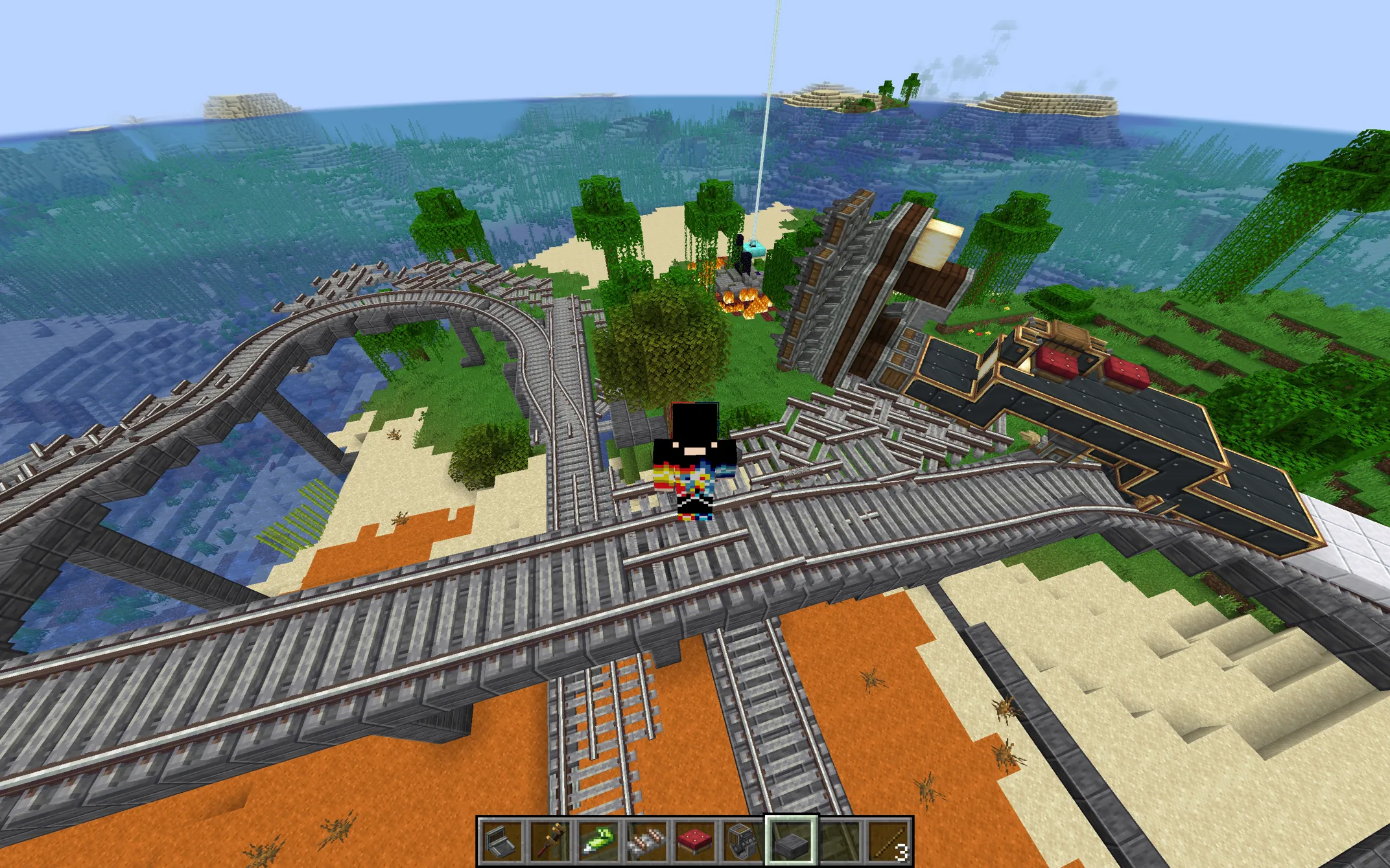 并分别在列车箱子中装入燃料、列车轨道和方块,