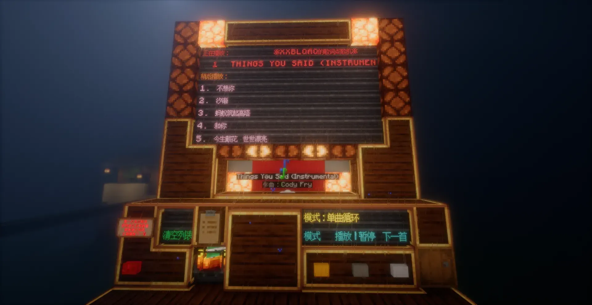 作者:XXBLQAQ嗯,用的基本都是机械动力本体,没有用附属,大概,然后就是网络点歌机模组,点歌机目前还有一点点小问题,唱片最多一次点歌8个,多了会无法切歌,需要清空列表,唱片点歌太少会不显示等待播放,用到了动态结构传输物品。 https://www.bilibili.com/video/BV1RwF2zqE3Q/?share_source=copy_web&vd_source=0ff1bb894c14375d01858f8d3841a98a