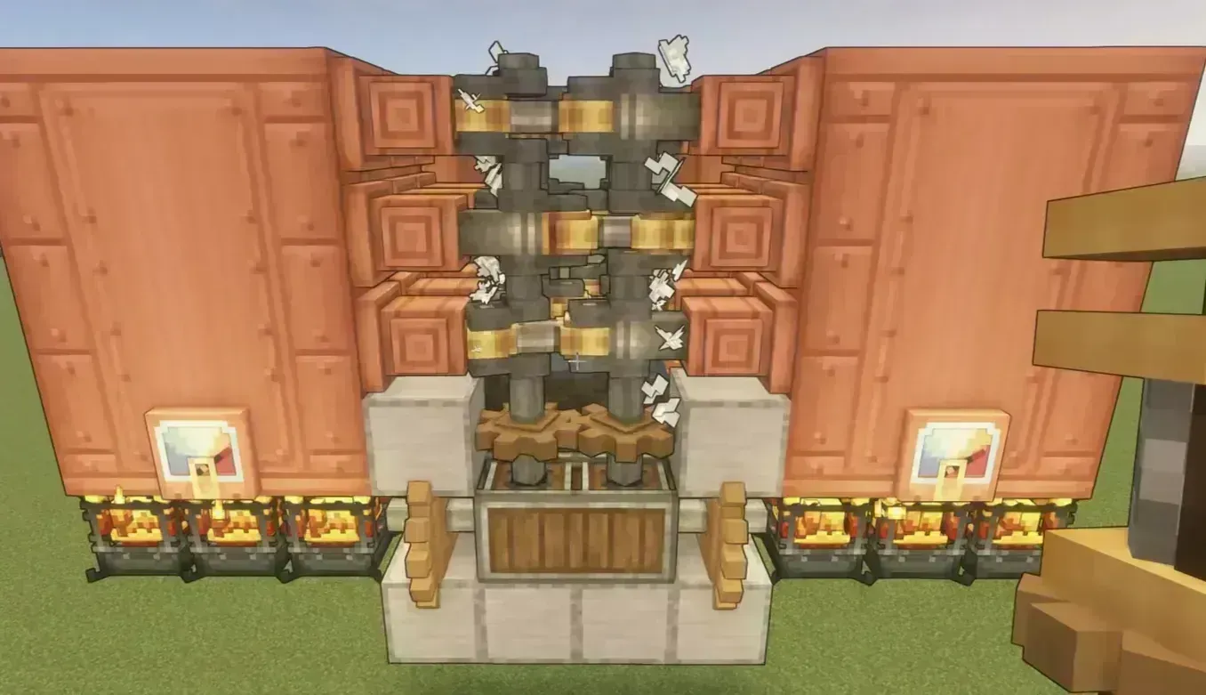 通用型将木桶+溜槽换成了漏斗加置物台,故可以在无需地板的情况下放置。
